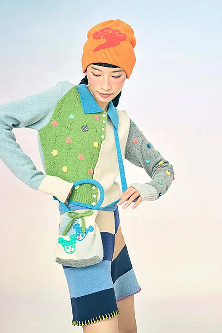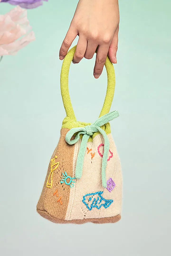 针织品不是传统中式服饰惯用的元素和质地,而YanYan就致力于探索和开发针织品的各种可能性。Tote Bag、围巾、头饰...... 除了衣服,YanYan也售卖多种针织配件。这款随身包上的刺绣设计,是不是充满童趣?不妨考虑选购一些针织单品,点缀你平日的造型吧。