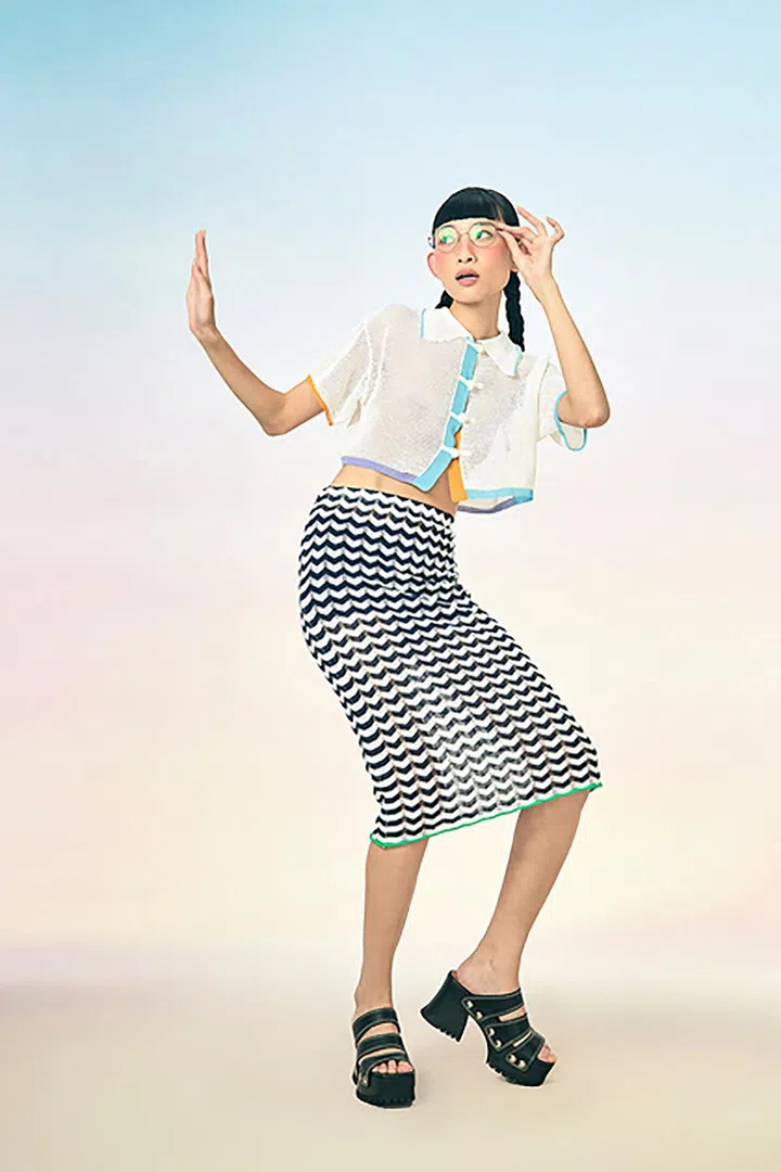 两位创办人的外婆都教导她们,要懂得拥抱自己的独特性。不需要在意他人的眼光,穿上喜欢的衣服勇敢展现自我。因此像这样以传统元素+现代剪裁的设计,是YanYan主打的风格。短款上衣融合了传统的盘扣元素(旗袍上的扣子),再融合时下流行的crop top剪裁,独特风格立马彰显。