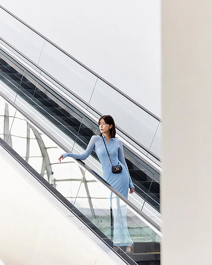 话说看到现在你认出几个扶梯了?上图王智荟的这一张,应该就是通往Singapore Club 1880的那条“万花筒”扶梯。而C'mon可调节(及拆卸)的肩带还让你可随造型肩挂或斜挎,绝对versatile。