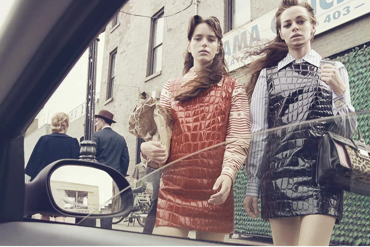 再来看看由Miuccia Prada操刀的Miu Miu。之前的广告大片多数都在perfect的studio lighting下进行拍摄;完美的 妆发、表情、composition,但说 真的……完美距离我们真的太远。 而这次由摄影大师Steven Meisel 掌镜的广告,结合纽约街头的随性和 不过分追求技巧的摄影,效果更能让人relate!我的最爱?当属那张通过车窗拍摄,及模特过马路时近距拍摄的两张,那么自然、不受约束,就好像你我日常会拍的照片。最让人佩服?所有服饰及造型都与街头融合的那么协调, 毫不突兀,让观者更容易接受。 这,应该就是当代时尚的进化吧。