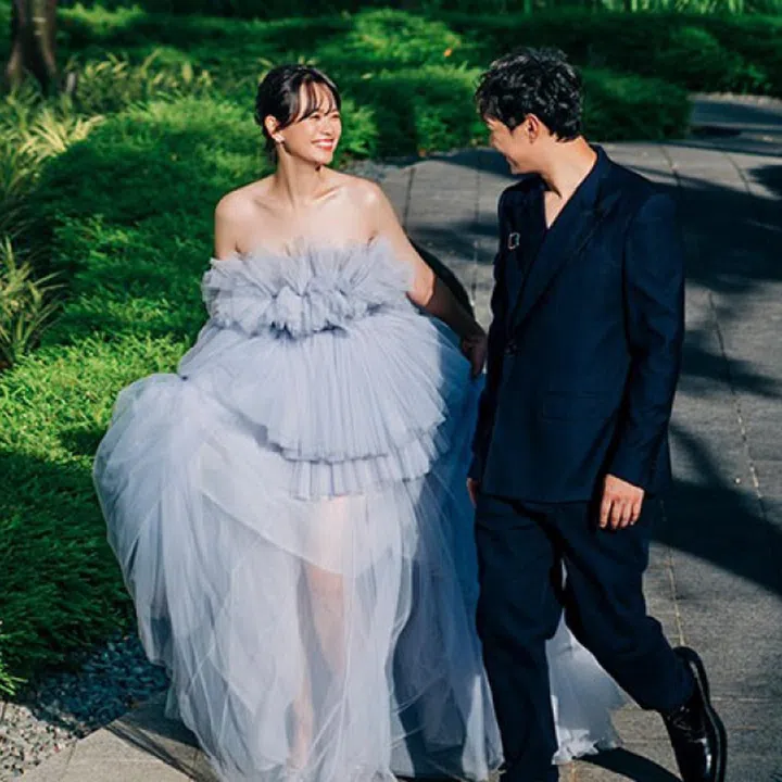 陈凤玲月前与徐鸣杰举行教堂婚礼喜结连理,除了婚礼上的优雅白纱让人惊艳,早前她还穿着Nicole+Felicia层次感薄纱礼服拍美照和视频。造型俏皮活泼,也充分演绎出Nicole+Felicia可爱与浪漫的一面。