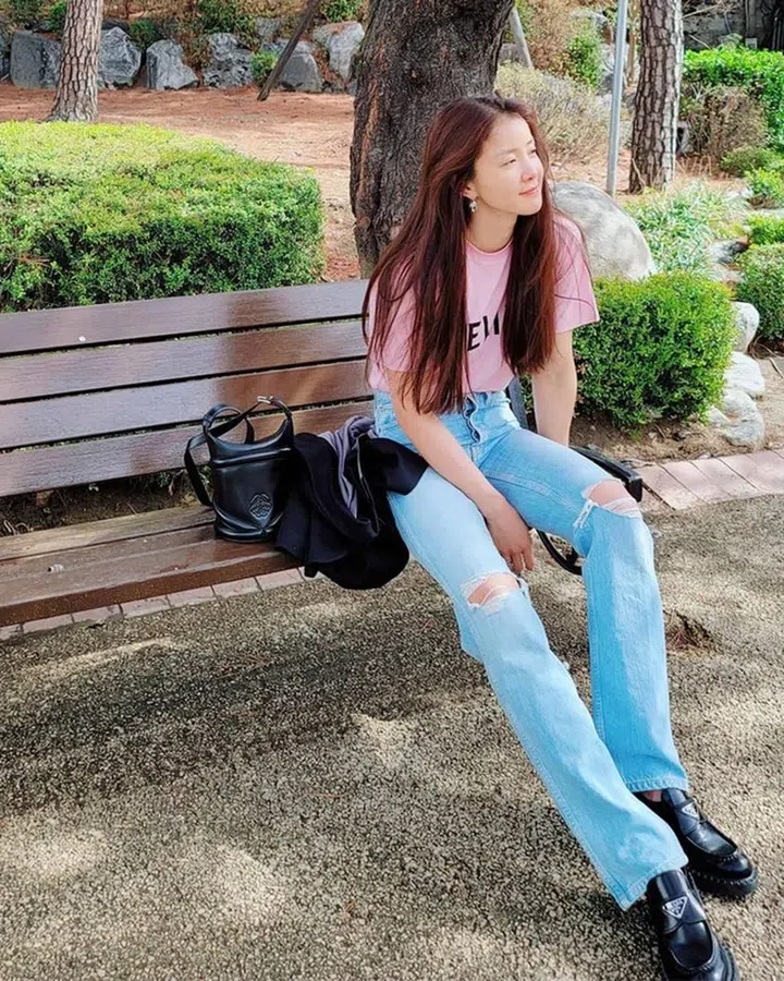 在《Sweet Home》里因“肌肉女王”形象让人印象深刻的李诗英,以抢眼的Celine粉红T恤及牛仔裤造型,搭配Alexander McQueen新主打的Curve包,展现阳光的一面。