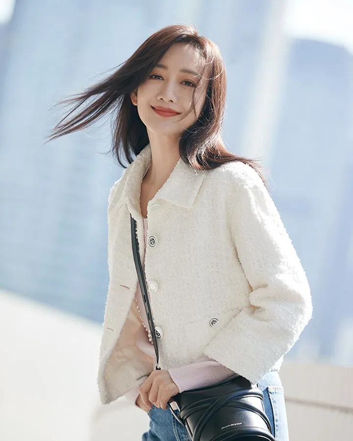 在《乘风破浪2》展现舞蹈功底的王鸥,以经典的白花呢外套及牛仔裤搭配Alexander McQueen新推的Curve包。