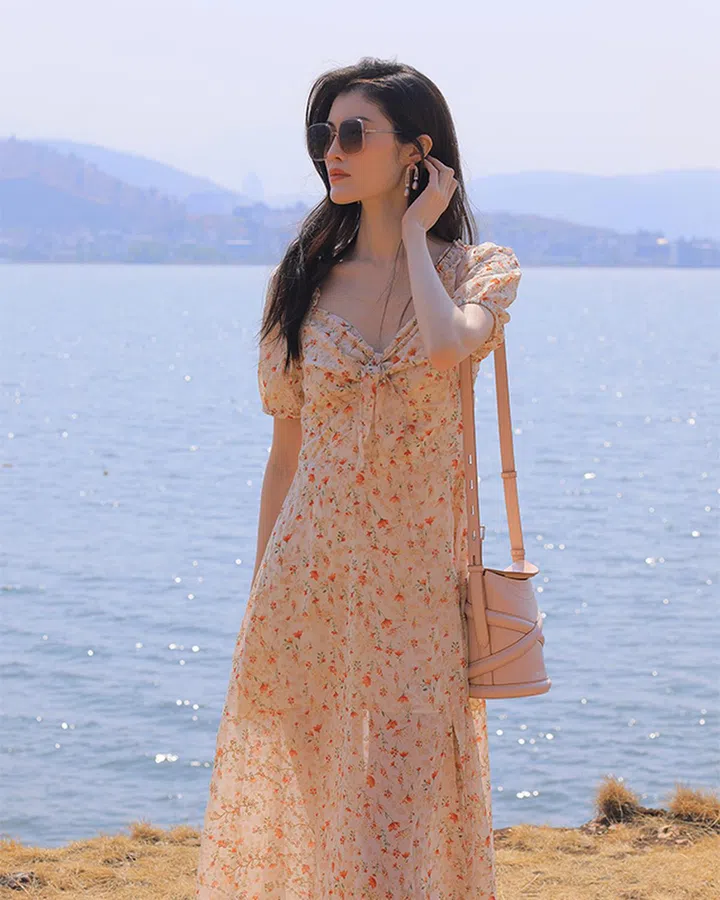 这款Curve包其实超百搭!像何穗以这身柔美的碎花连衣裙做搭配,整体看来也毫不违和。