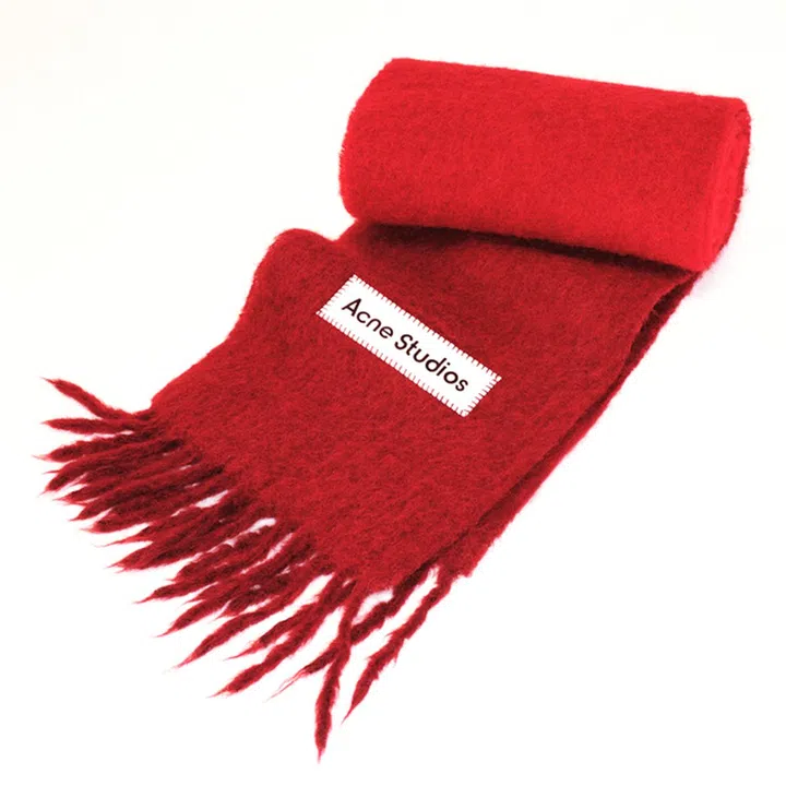 Acne Studios 2025新春限定系列推出了充满个性和张力的时尚单品,经典Mohair(马海毛)围巾以正红渐变晕染色,充分地展现节日妙趣。