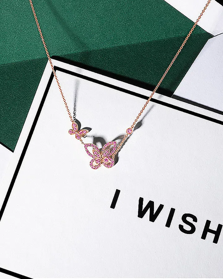 今年佳节,Graff更为系列推出限定新作—— Butterfly Silhouette系列的密镶粉红蓝宝石18K玫瑰金项链, 以唯美粉色调“包裹”双翼,展现出更独特的迷人光彩。 岁末,why not送自己一只“蝴蝶”作为自我更新和希望的象征, 勇敢迎接和拥抱即将到来的美好时刻。