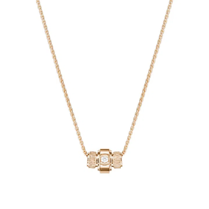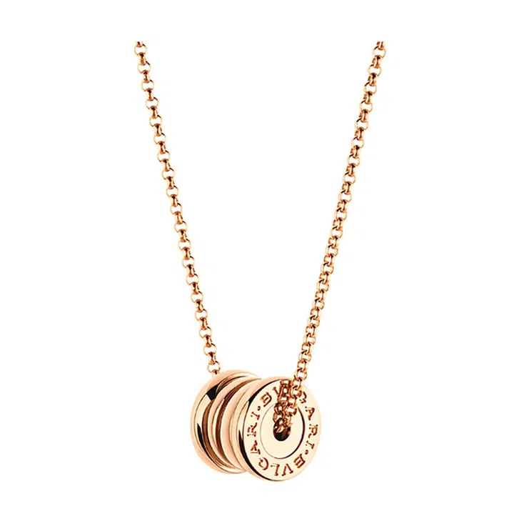 从世界著名的圆形竞技场——古罗马斗兽场汲取灵感的B.zero1,以其独特而和谐的螺旋设计,象征着过去、现在和未来。上图的项链采用了温暖的玫瑰金,项坠上的字母雕刻则增强了品牌的识别性。无论是搭配休闲服饰还是正式礼服,这款项链都能轻松应对。