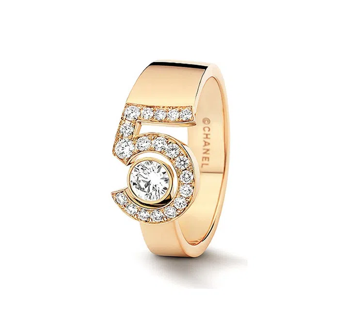 数字“5”一直是Chanel的标志性代表:已逝创办人Coco Chanel女士的幸运数字;她所属的狮子座——在天文星盘排第5;她发表时装系列的日子——5月5日;品牌经典的Nº5香水。上图这款以品牌独特米色金打造的Eternal Nº5戒指,融合了传统与创新,展现出品牌一贯的高雅与奢华气质。