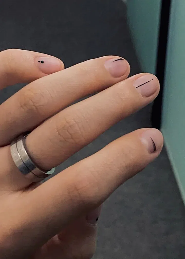 第一次尝试男士美甲,可以试试这一笔“勾销”的设计。简约、时尚地以一笔完成设计,低调不夸张,而且要是不喜欢,想清除也比别的设计来得容易。