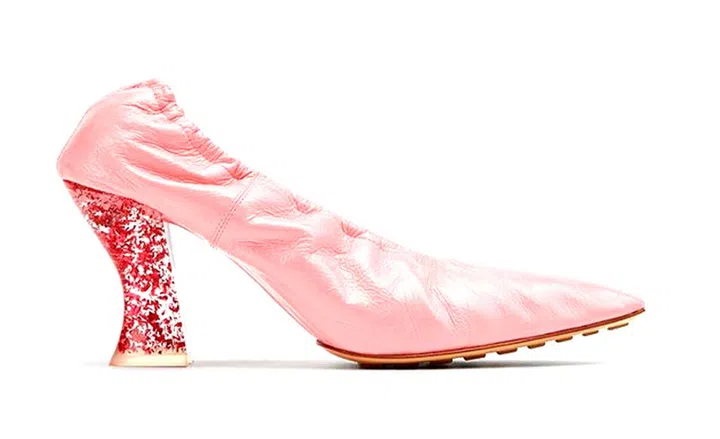 这款鞋的设计来自1990年代品牌archives的灵感,以具有运动感的橡胶包裹设计的鞋底,结合充满女人味的slingback和kitten heels设计,造型新颖而独特。