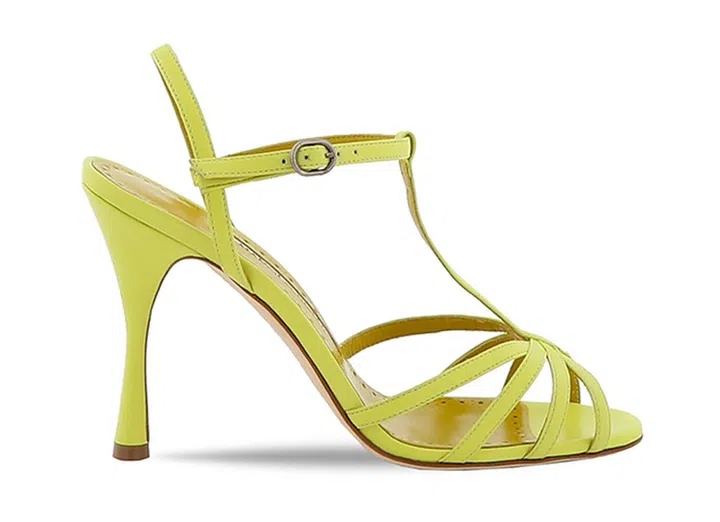 偏好舒适的低跟凉鞋?这款好像冷饮中鲜黄柠檬的简约凉鞋,还很接近今年的年度流行色“亮丽黄”。