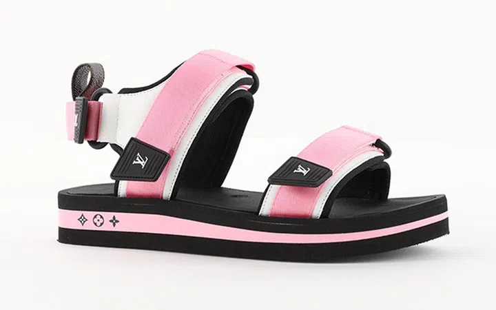 这双鞋首次见于品牌的2020春夏系列,最独特的是它的后跟造型,其实是以Monogram Flower的形状打造。另外醒目的撞色设计,也让人想起装饰鲜红樱桃的香草冰淇淋。