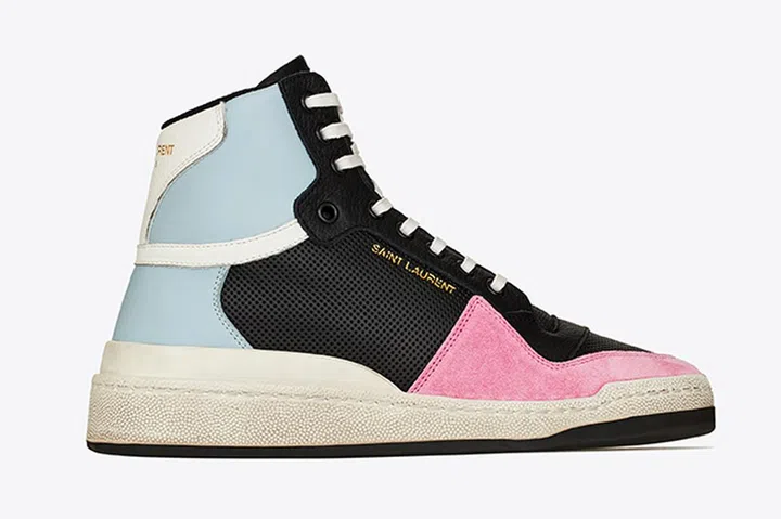 Saint Laurent也推出这么甜美可爱的配色,很惊喜吧?采用皮革和麂皮组合打造,外加撞色设计和网眼细节,令鞋款充满细节美。