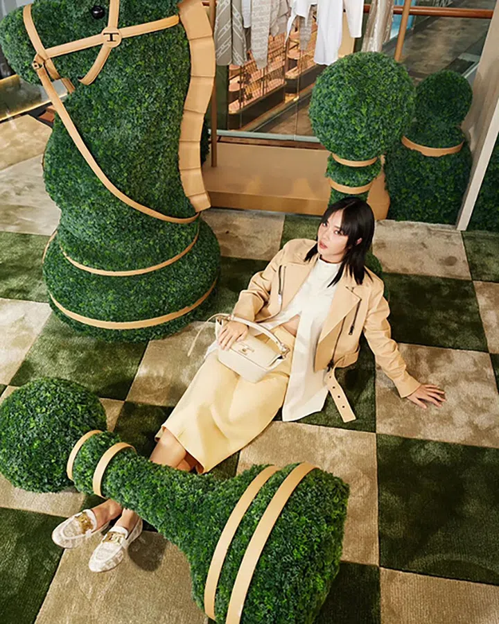 Tod’s早前在本地MBS呈献意式花园快闪体验,黄暄婷在现场选背的是米白色T-Box手袋。这款结构有趣的手袋从日本折纸艺术(origami)撷取灵感,装饰T Timeless金属包扣的那一面,其实是手袋上端哦。