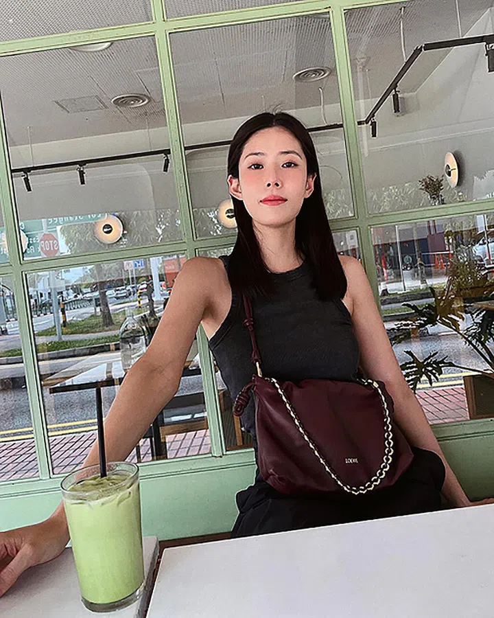 Saint Lauent新推出的Jamie 4.3 Pochon链袋,手袋采用柔软羊皮及有机棉衬里,令袋身极为轻盈。口袋开合部分以抽拉设计为特色,包链可以以长链斜挎,也能像黄思恬这样双链肩背。