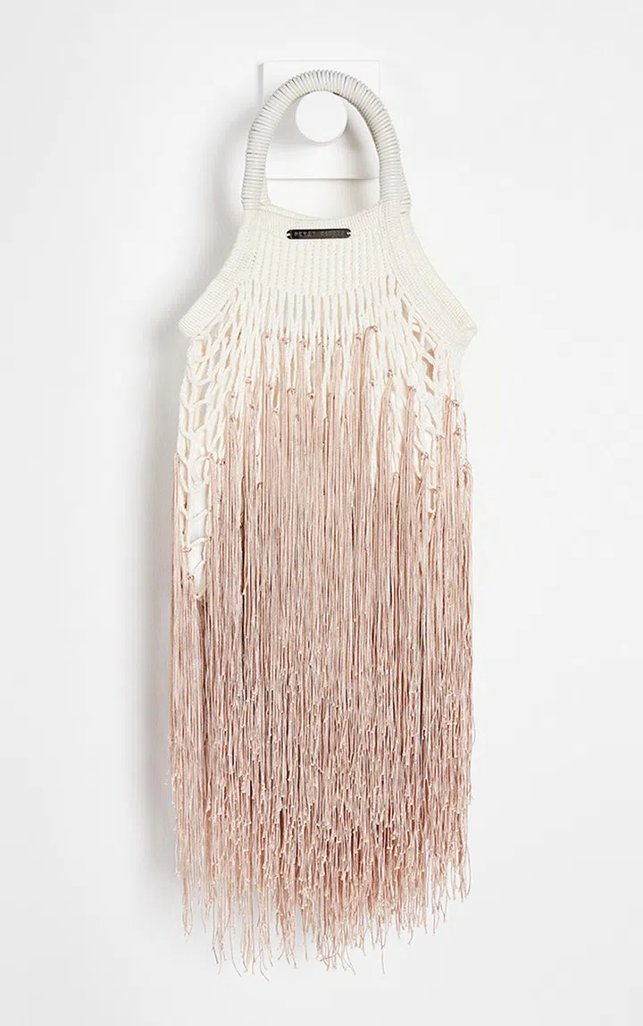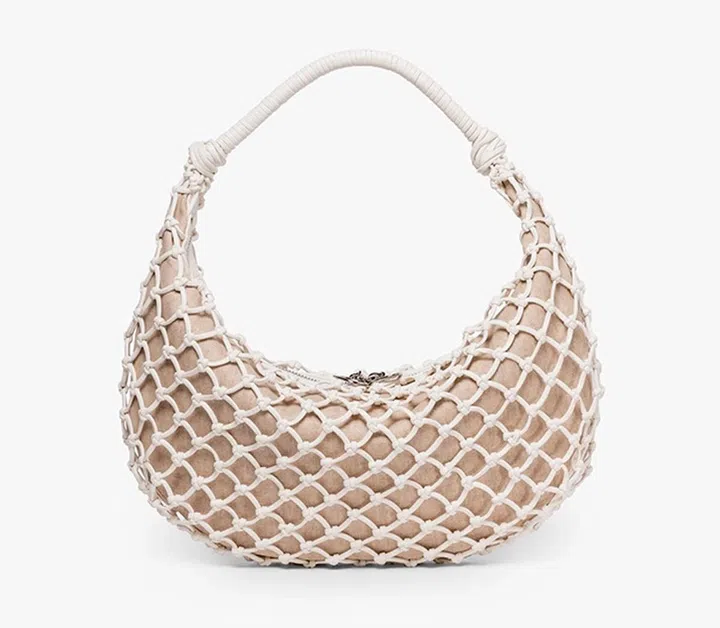 这款Luna bag虽然同样采用编织网设计,但其月牙形的轮廓及皮革质感减少了些“买菜袋”的痕迹,可用来当作度假或休闲时的肩袋。