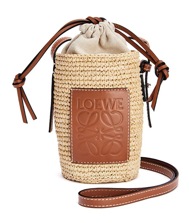 这款小巧斜挎袋前方装饰LOEWE Anagram皮革标牌,内里为抽绳小包,肩带可以调节长度,造型百搭又有趣。