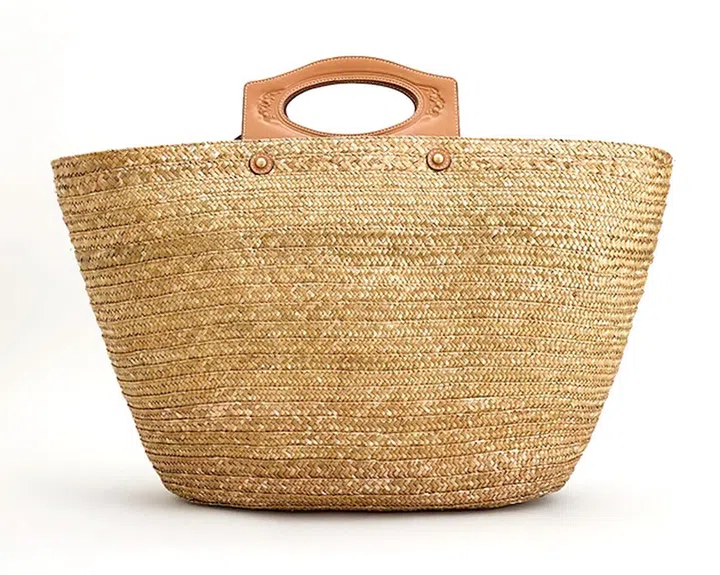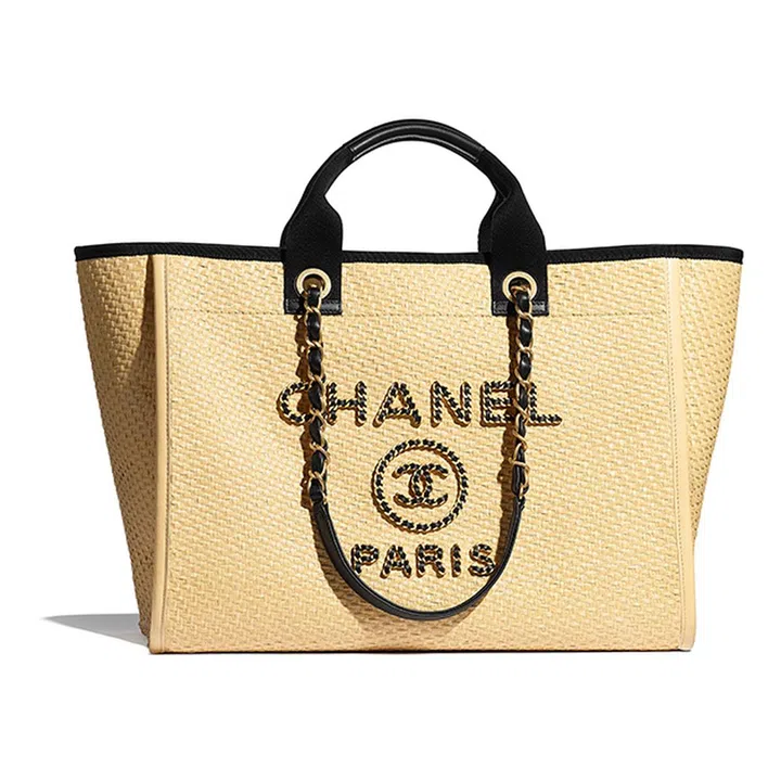 这款可手提可肩背的大型手袋拥有黑色、天然色、拼色草编款,黑色皮革款,以及颜色靓丽的布面款式。仔细观看,该手袋连袋身上的“CHANEL”标志装饰还采用金属和皮革交织的设计,正好与草编袋身相呼应。