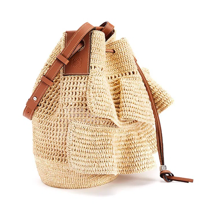 以荷叶边装饰的拉菲草草编包,是不是都快让你认不出这是Balloon手袋了?你还可以为手袋添加系列中色彩多样的个性化挂件,让外观更加有趣。