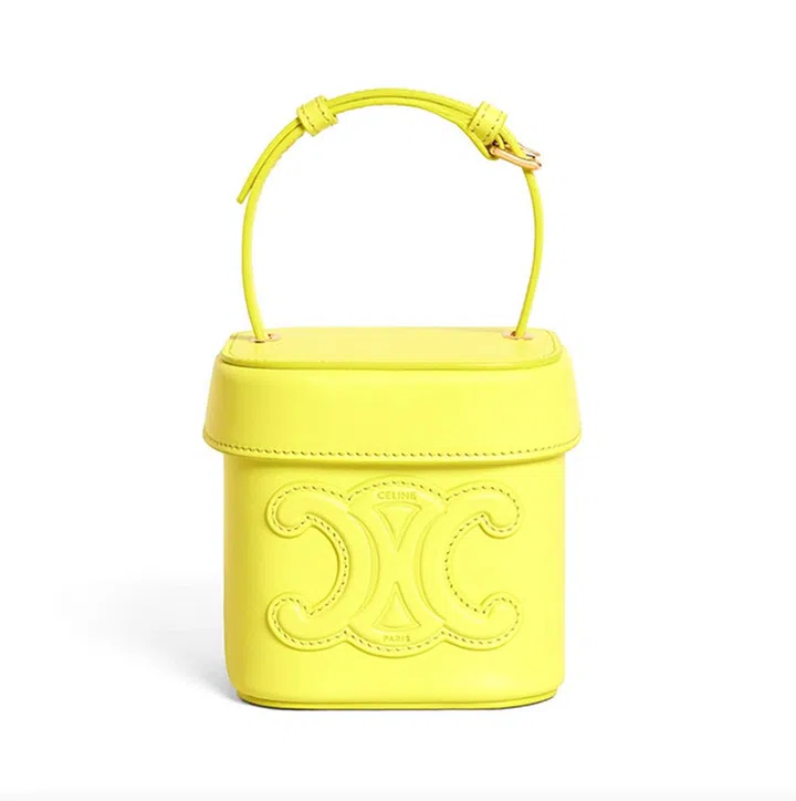 品牌的这款新袋造型类似“化妆箱”手袋,配色采用明媚欢快的茴香黄色调(另外该款式也有亮红色设计),搭配深色系或pastel色系服装都适合,既和谐又醒目。