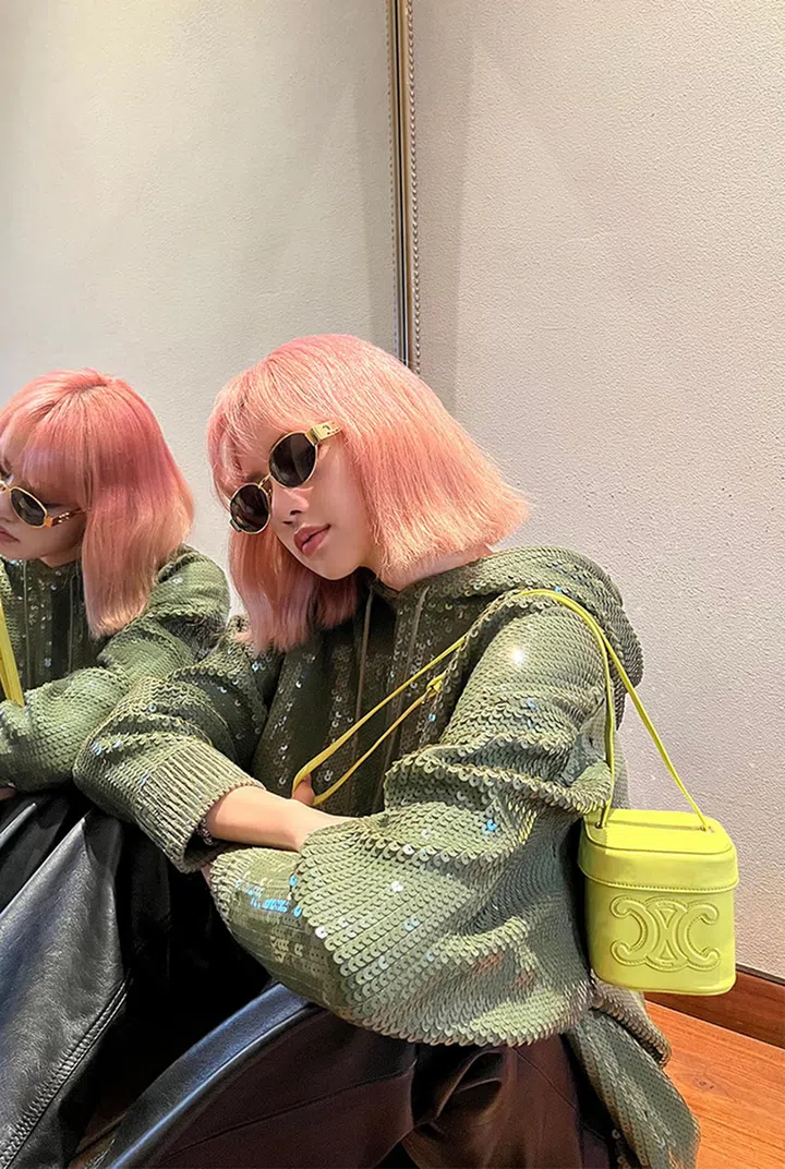 喜欢迷你小包,选择鲜亮的颜色更适合作为造型单品。尤其是你如果有染粉色、紫色、蓝色、绿色等发色的话,利用发色和手袋就能制造视觉冲击,就算平时只穿白色上衣和牛仔裤也够出挑。