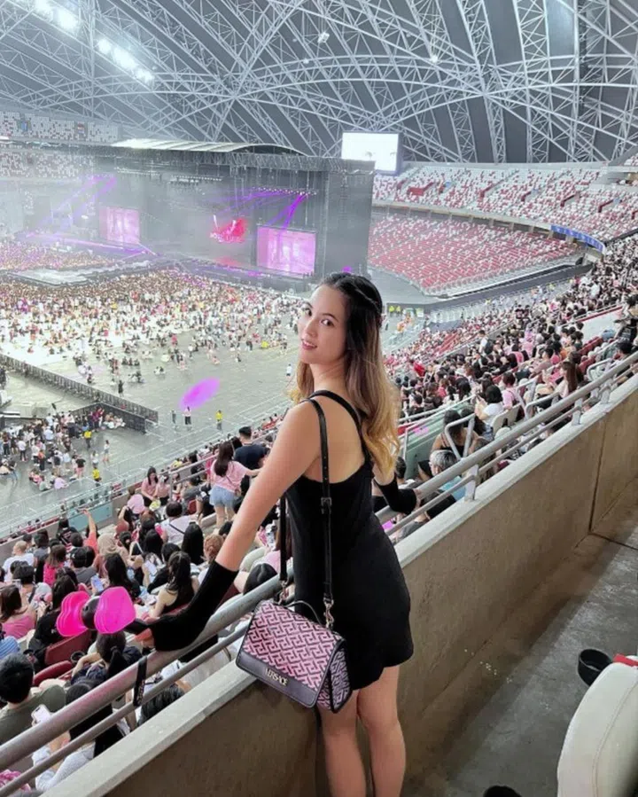 5月的Blackpink演唱会可谓是“众星云集”(点击看前往观赏的本地明星都穿了什么造型)!郑颖背带了Versace的La Greca Signature Shoulder包包,包上印满了品牌的经典图案。此外,包包粉与黑相间的色彩搭配,极其贴合演唱会主题噢。