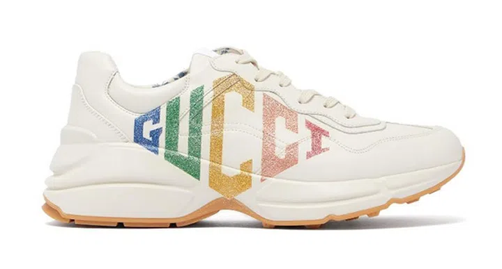 万能百搭的小白鞋是每个女生必备的基础款,Gucci的这双白色球鞋就增添了更活泼有趣的细节,皮革材质加厚鞋底设计,洋溢复古运动风,侧面饰有彩虹色的闪亮Gucci标志,让女孩轻松穿出时尚休闲风。