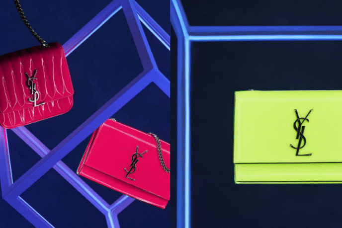 同样饰以"YSL"金属搭扣的Kate手袋,也推出了荧光款式!小巧的长方形设计可侧背、斜背,也可收起链条当手握袋。因此自推出以来就深受年轻人的青睐,迅速让它成为品牌的经典包款。