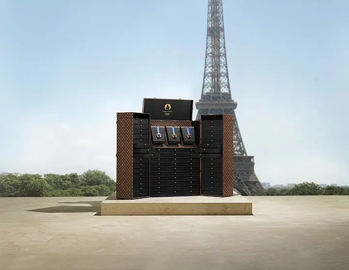 Louis Vuitton还特别定制奖牌箱,保护、展示Chaumet设计的这届夏季奥运会和残奥会的珍贵奖牌。奖牌箱的设计灵感来自品牌的Malle Coiffeuse梳妆箱,箱面覆盖传奇Monogram帆布,并配有黄铜角和锁扣(这些设计自1850年代以来就一直用于品牌旅行箱)。奖牌箱打开后,可看到专门设计用来存放468枚奖牌的抽屉。