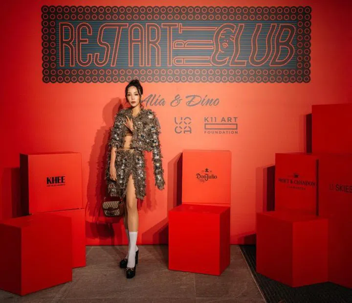 Fiona出席在K11 Atelier的年度私人派对The ReStArt Art Club,携带了Gucci的迷你型Horsebit 1955肩袋。这款手袋采用GG Supreme canvas打造,外型原本随性、日常,但Fiona搭上设计抢眼的华贵套装,再穿上少女感十足的白袜,令造型更有混搭趣味,在晚宴场合反而更显时尚个性。