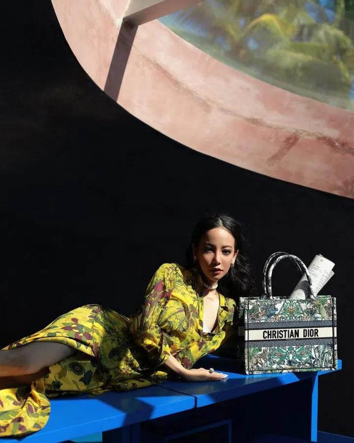 2022年我们最爱的本地时尚女星——谢宛谕,今年继续发挥时尚魄力,每一张照片无论是品牌推广还是出席活动都有很认真精心策划。上图这款Dior Book Tote,装饰意大利艺术家Pietro Ruffo设计的多彩Étoile de Voyage刺绣图案,造型别致又醒目。尽管这款由创意总监Maria Grazia Chiuri打造的经典Dior Tote已经拥有超高人气,但因为其纹样和设计众多,其实拎出门也不容易撞款。