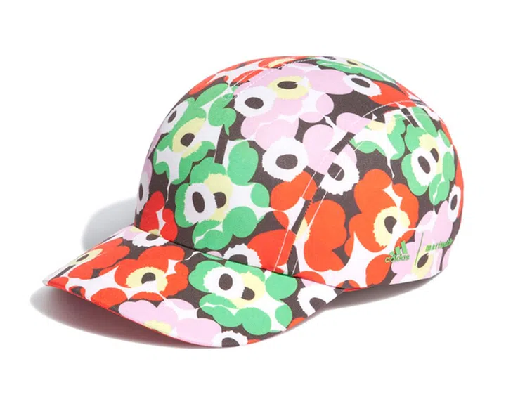 Marimekko精彩的花卉印花印在运动品牌Adidas的棒球帽廓形,显得格外清新、醒目。外表满分,功能性也仍在。采用Adidas独门的AEROREADY技术缝制而成,汗水的吸收与快干技术确保佩戴者的干爽与清爽。