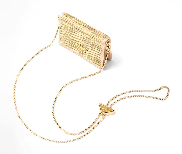 Gucci也为节日佳节推出各种各样的服饰、手袋、鞋履及家居用品,其中这款以GG标记组合而成的水晶圆球链袋,造型华贵唯美,可用来搭配各种小礼服出席晚宴及活动。
