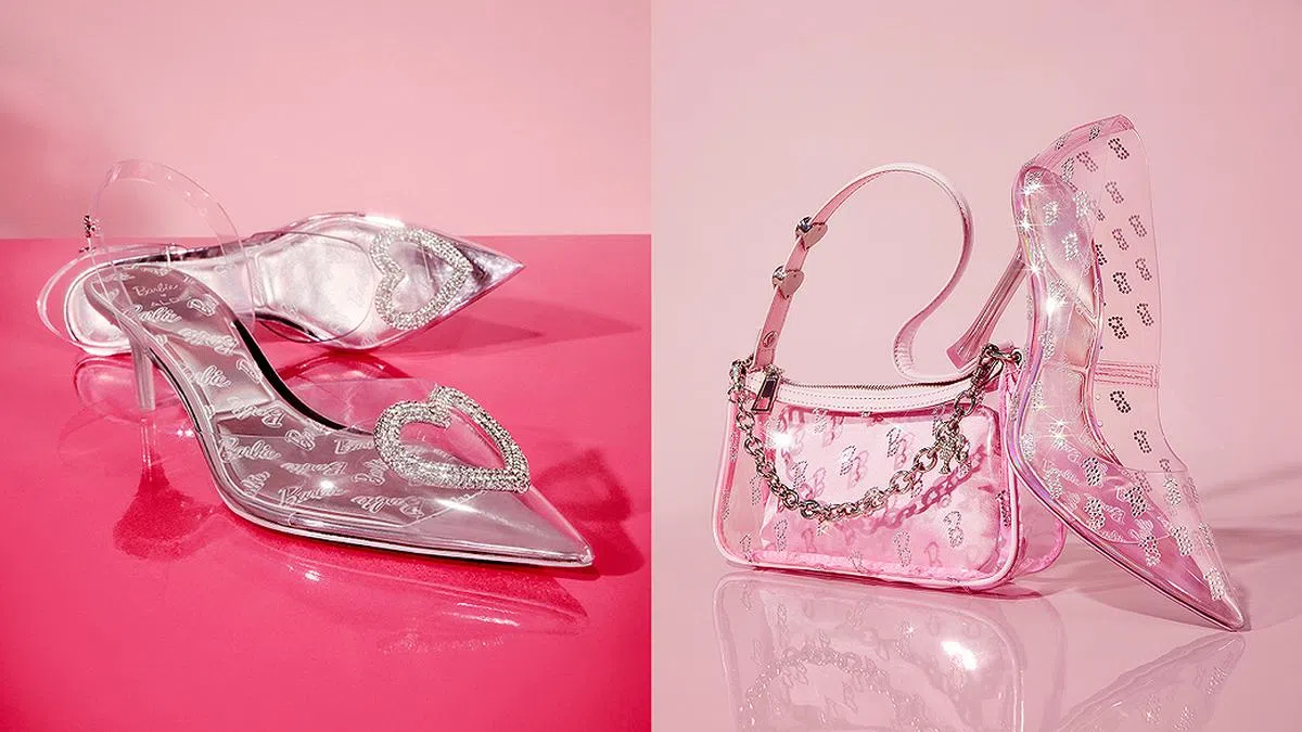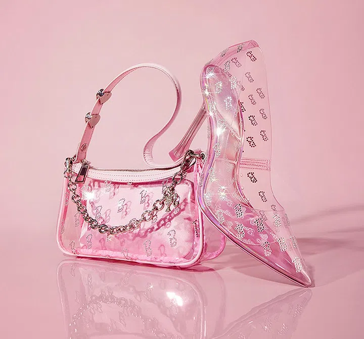 该系列以风格独特的芭比美学演绎精致鞋款,使设计既梦幻又不乏实穿性。比如可展露双脚的透明设计,鞋面点缀璀璨装饰,造型可爱又性感。