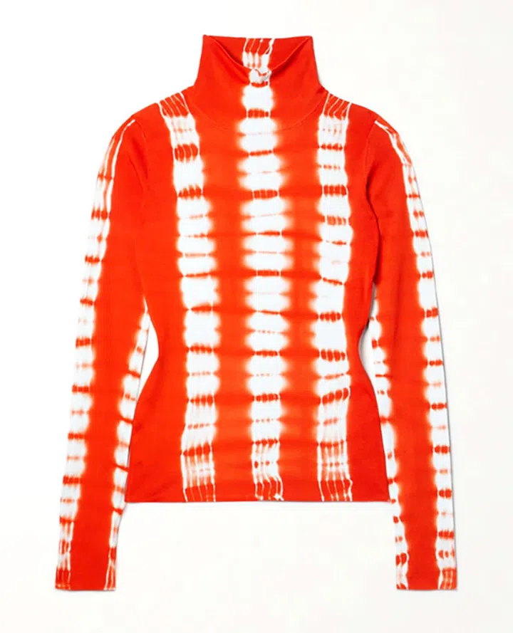 "视觉系"时尚人,新年出门自然也不能输。这款图案抢眼的tie-dye上衣,穿在短袖装内,或者搭配黑色工装裤,打造出大胆又欢乐的个性新年look。