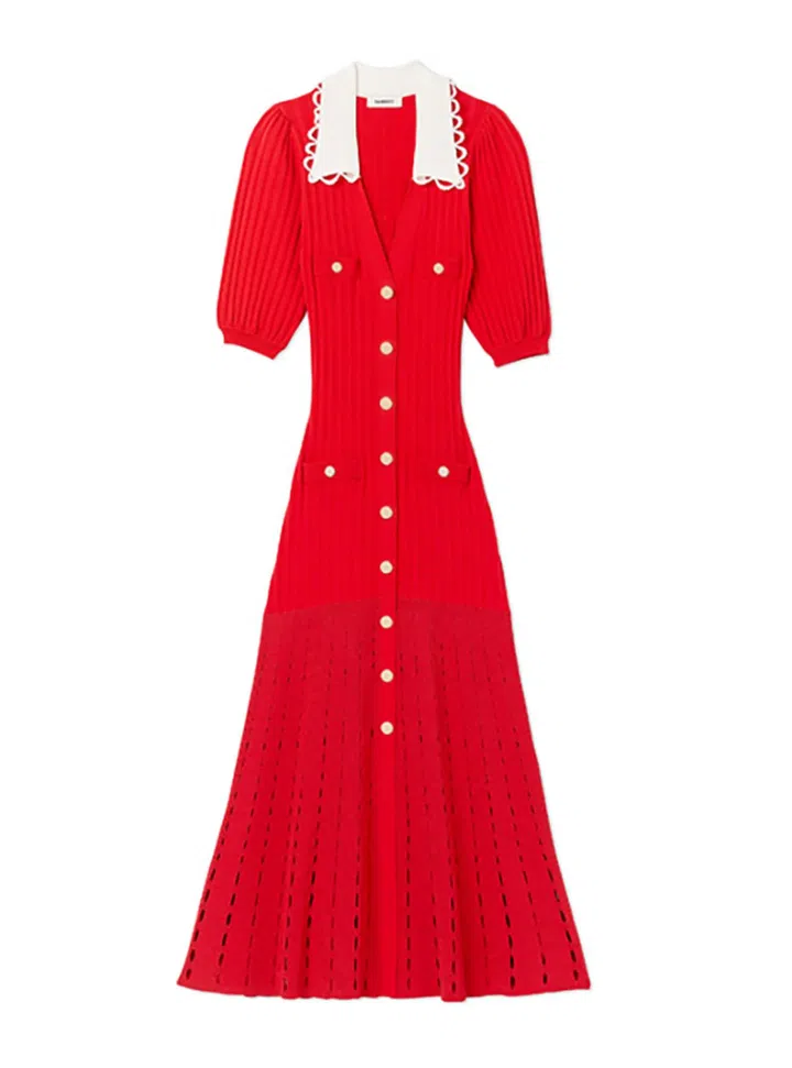 来自Sandro兔年限定系列的针织连衣裙,融合中国传统及法式风格,造型浪漫又经典。除了可当一件式连衣裙,也可解开腰部以下纽扣,将其当作开衫搭配长裤。