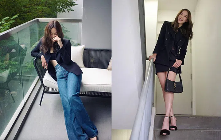 Rebecca也很偏爱帅气的黑色西装。想投资一款经典样式,不妨从Saint Laurent、Dior、Celine进行选购。或中性帅气,或优雅修身,或随性有型,搭配阔腿牛仔裤、短版胸衣或迷你裙,展露性感的同时又保持着典雅、不浮夸的气质美。