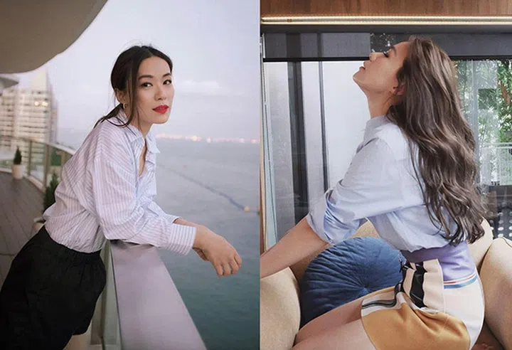 设计简约和剪裁现代的衬衫,Rebecca林女神似乎特别偏爱(因为真的很好搭)。为了突破刻板印象,她就以短裤或高腰迷你裙来搭配。不仅令整体造型更清爽休闲,还能秀美腿(回顾:#红星大奖2021 性感美腿大较劲)。
