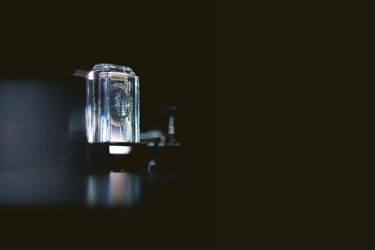 Cartier于百多年前发明的Mystery透明台钟