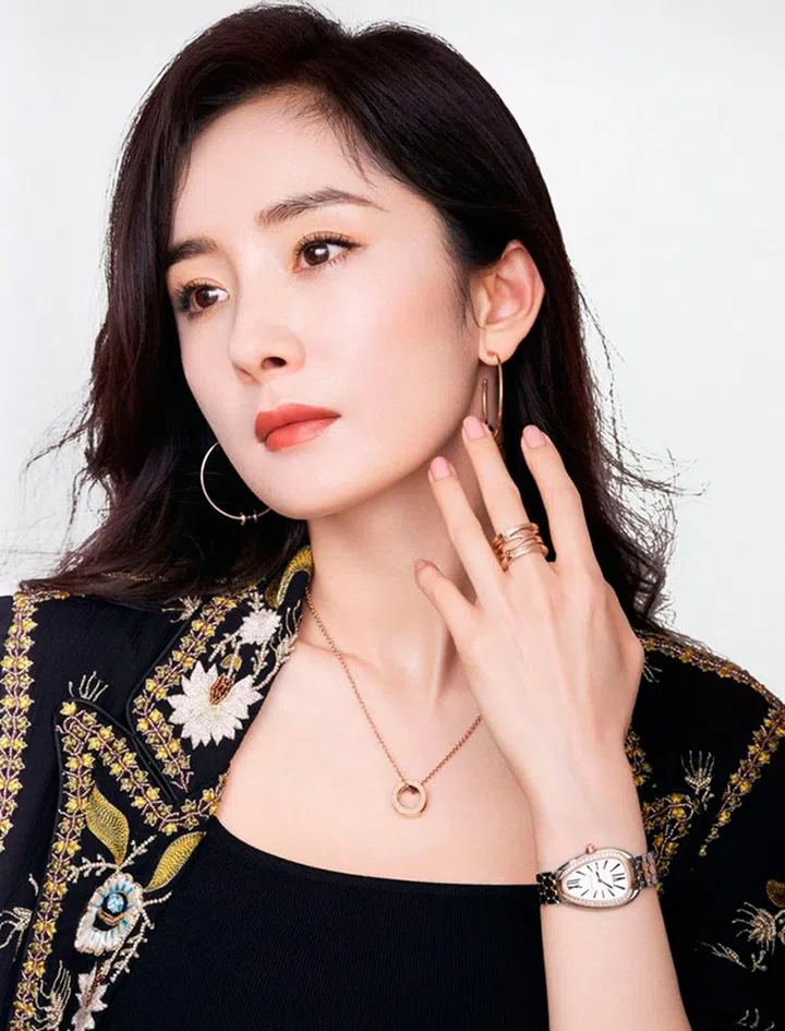 杨幂佩戴Bvlgari B.zero1、Serpenti珠宝及Seduttori鎏光蛇影腕表,简约大方的设计展现女性追求独立仍不失娇柔的魅力。