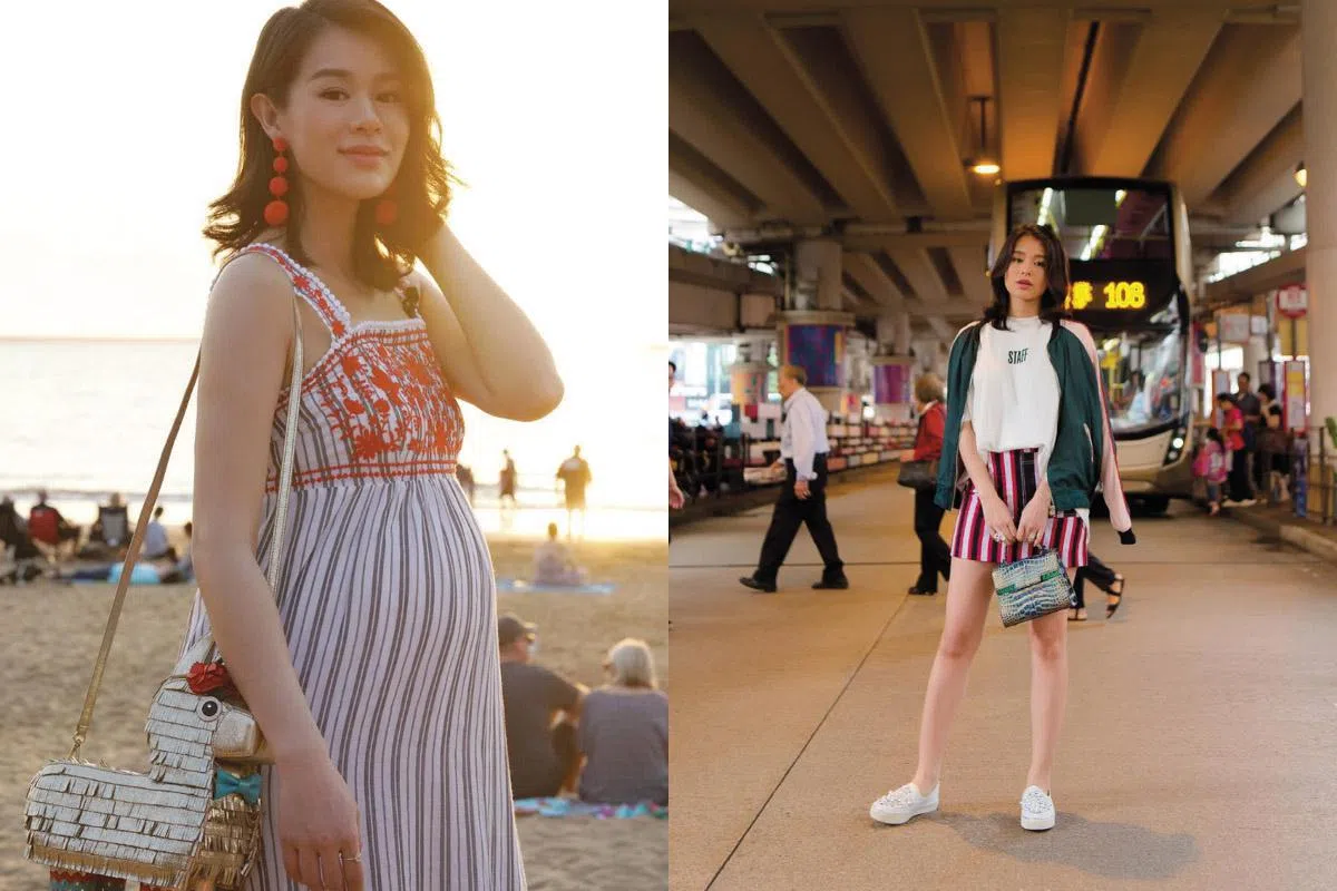 胡杏儿穿上Vetements白T恤搭Ports 1961条纹短裙,外罩Pinko刺绣棒球外套在巴士站玩起街拍,不仅毫无“孕味”还潮爆香港街头。