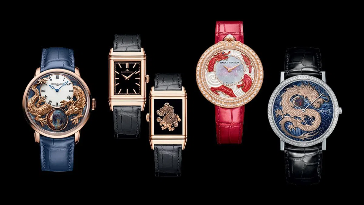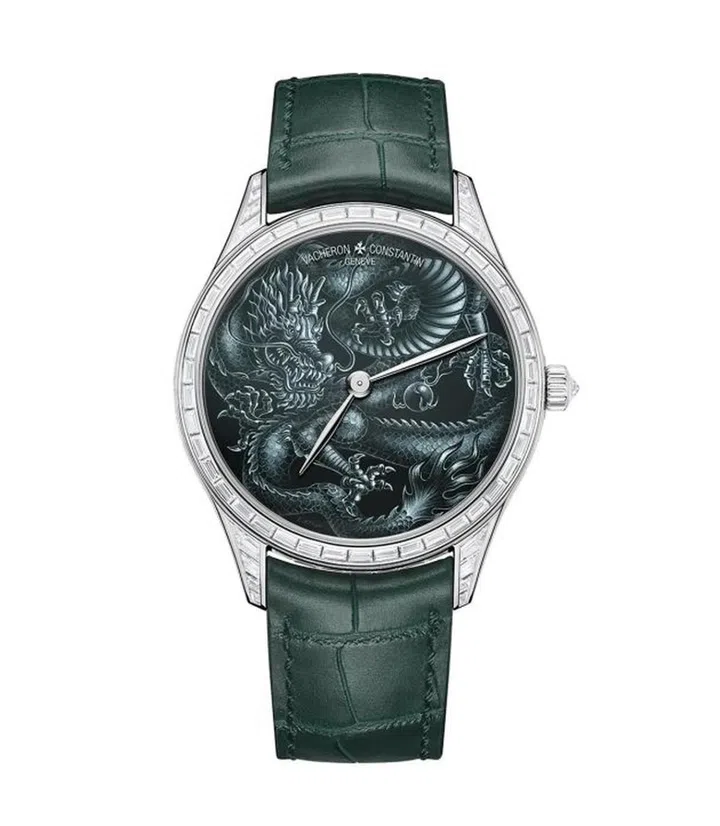 Vacheron Constantin推出独一款Les Cabinotieres Grisaille高级珠宝腕表,首次结合灰阶珐琅工艺(grisaille enamel)和珠宝镶嵌工艺,在表盘上塑造一条威严的五爪“祥龙”形象。该表来自品牌“Récits de Voyages”寻游探奇主题系列,旨在致敬全球丰富多元的文化艺术。除此以外,品牌的Métiers D'Art艺术大师系列也照例推出手工雕刻的巨龙腕表(铂金款和粉红金款各限量25枚),融合珐琅彩绘,展现出祥龙的力量和祥瑞——同时,这也代表着品牌十二生肖腕表的首个循环完结。