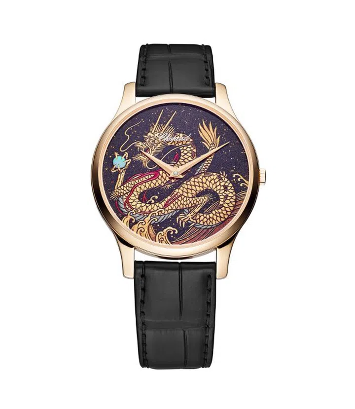 该龙年莳绘腕表从中国传统文化汲取灵感,并在拥有百年历史的山田平安堂(Yamada Heiando)工坊中生产,由漆艺大师小泉三教(Minori Koizumi)亲手悉心绘制,花费至少20小时方能完成一枚。同时腕表采用符合Chopard可持续发展和社会责任理念的玫瑰色18K金打造表壳,搭载配备微型摆陀的L.U.C 96.17-L机芯,可确保腕表整体厚度不超过6.8毫米。迄今为止,Chopard已连续12年推出L.U.C XP生肖主题莳绘腕表,龙年表款也是品牌的第十二款生肖时计作品。