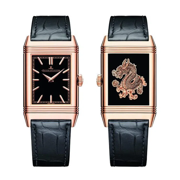 Jaeger-LeCoultre以Reverso翻转系列呈现龙年特别款腕表。自1931年起,该系列以空白金属表背为画布,激发手工艺大师的创意,创造出稀有之美的时计臻品。Reverso Tribute Enamel Dragon翻转系列珐琅腕表,表壳翻转后显现金色云朵中的祥龙。祥龙栩栩如生地雕刻于玫瑰金表背上,与黑色大明火珐琅背景形成独特对比。镌刻大师运用浮雕工艺,耗费80小时完成。表盘采用不透明黑色大明火珐琅,设计简约优雅,仅限定制生产。