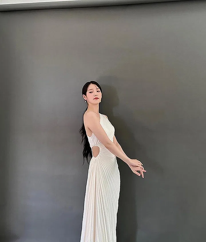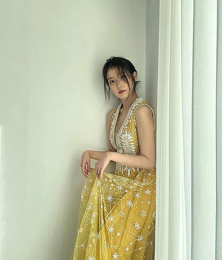 IU穿着黄色Cucculelli Shaheen裙装,造型明媚又活泼。2022年,IU还穿着Cucculelli Shaheen的一款white constellation dress出席了第43届青龙电影奖。