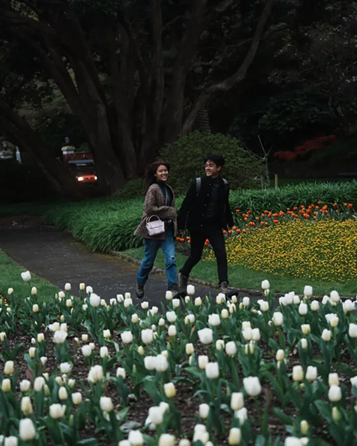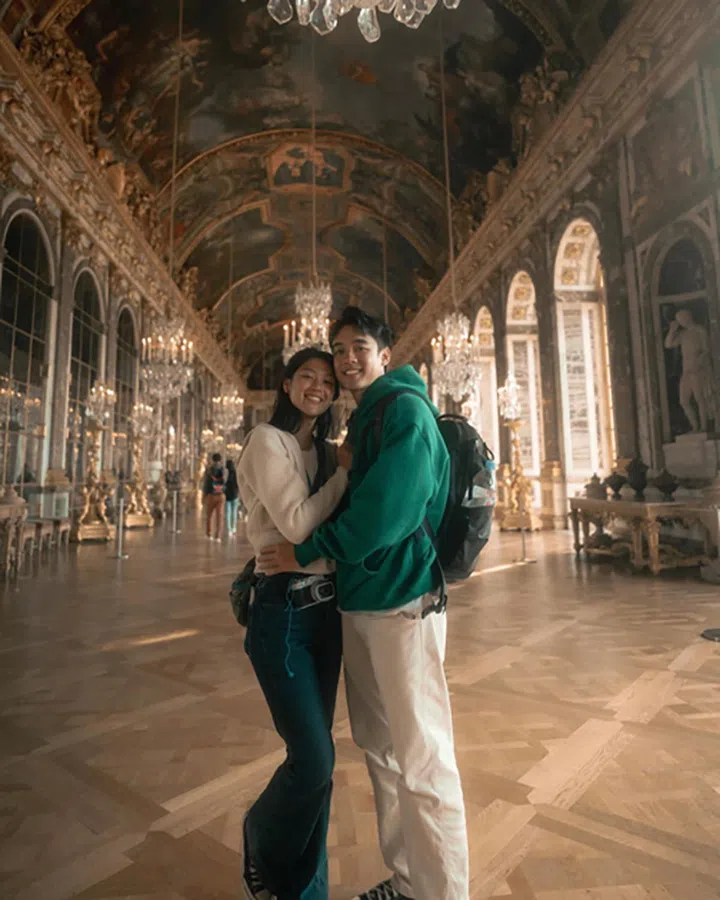 在名胜景点如何不拍出生硬游客照?参考他俩在法国凡尔赛宫Hall of Mirrors (镜厅)的照片,试试多一些互动,把注意力放在人的情感和动作上。毕竟情侣一起出国,重要的不是去了哪里,而是一起创造了什么记忆。