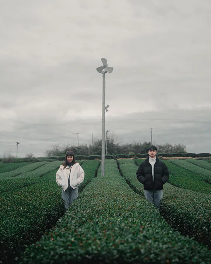 偶尔反色搭配,一黑一白,或两人用对比色玩穿搭(你也可试试黄+蓝的两色组合),在拍摄照片时更有视觉趣味。哪怕遇到阴沉的天气,照片也能让人眼前一亮。