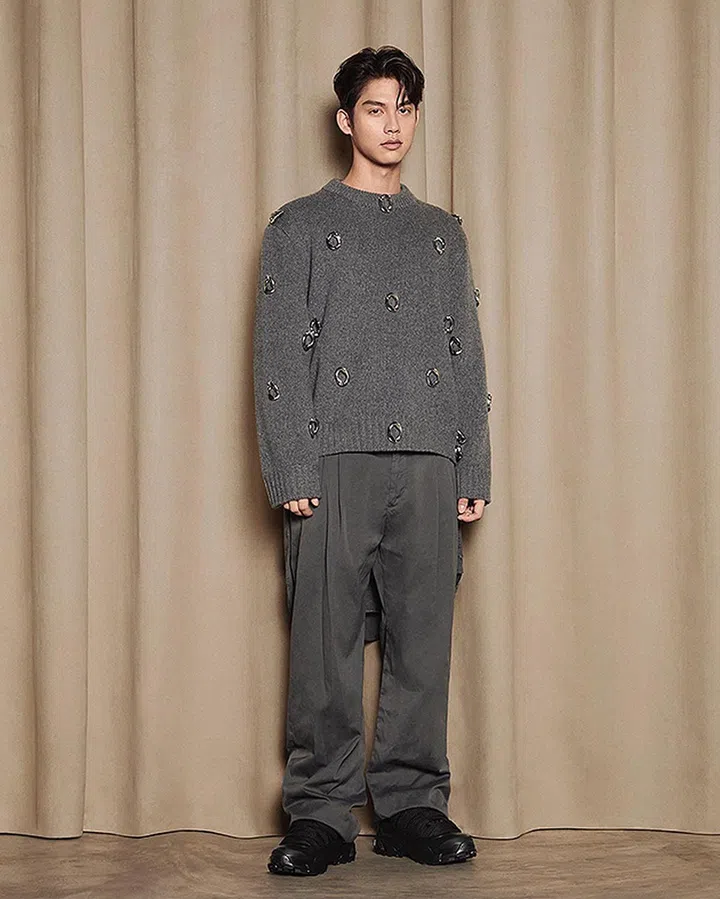 作为Burberry南亚太地区的首位品牌大使,在早前释出的形象照中他身穿带链节装饰的深灰色喀什米尔羊毛毛衣,搭配阔腿裤,风格优雅又带一丝慵懒。