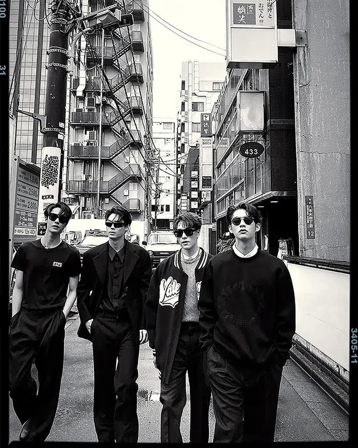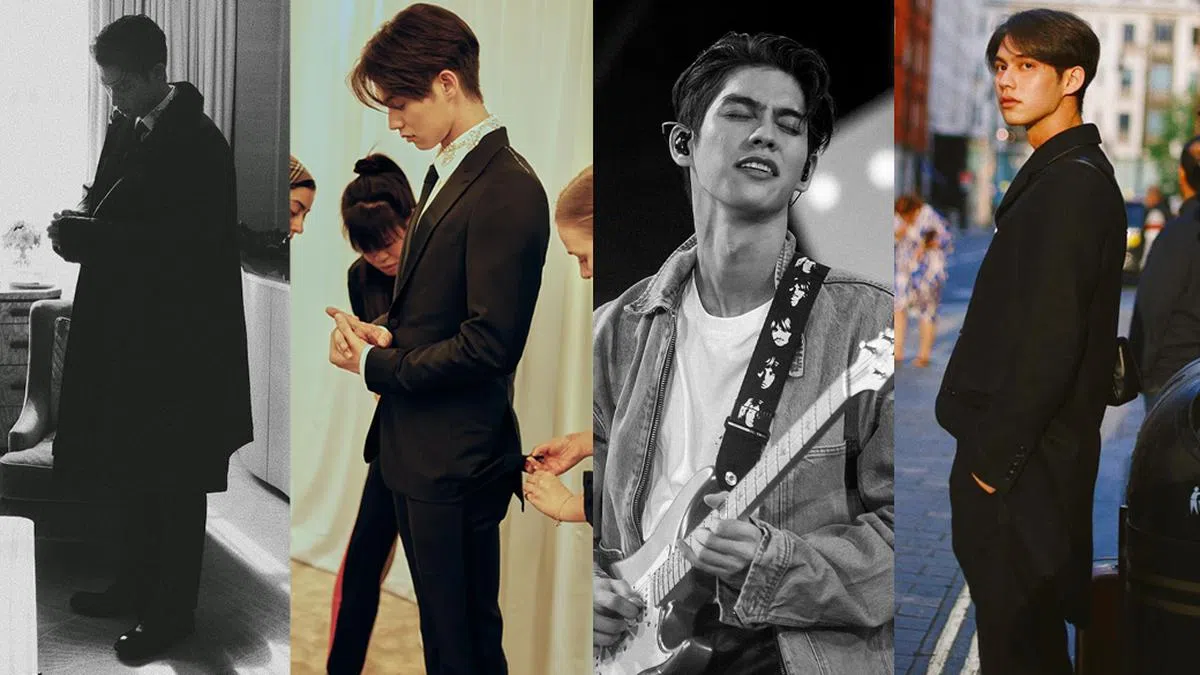 这张照片是早前Bright与Win Metawin O、Dew与Nani Hirunkit到日本出席见面会时所拍。他以休闲套装露出白色领口,在深色穿搭中格外显眼——另外Bright飞往伦敦时,出发造型也是黑衬衣+黑色长裤+黑色挎包+黑墨镜,再内搭白tee。