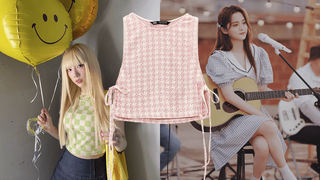 除了经典黑白千鸟格,你还可以试试Zara这款粉色调千鸟格上衣。搭配同款迷你裙,穿出甜美的少女感。而且,现在各大快时尚品牌都在热卖中哦。